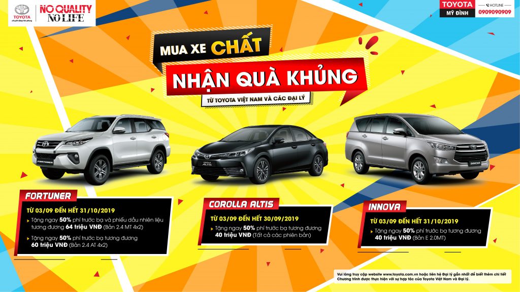 – Khi mua xe Fortuner từ ngày 03/09/2019 đến hết ngày 31/10/2019 Quý Khách sẽ được: